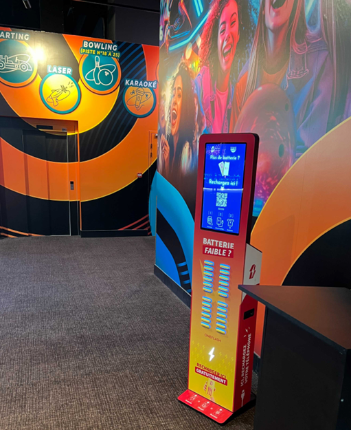 Borne OneFlash en situation dans un complexe de loisirs (Imagipark, Marne La Vallée)