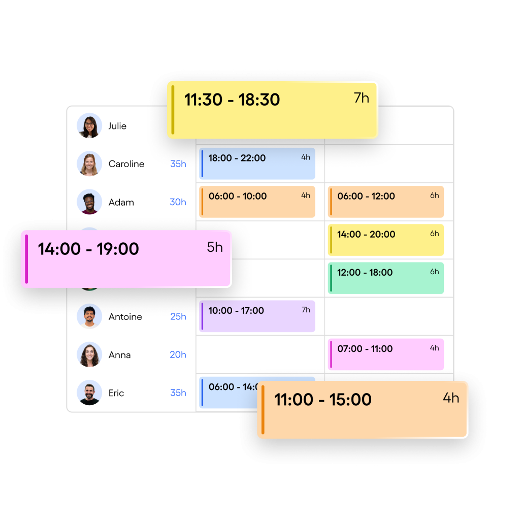 - Équipes connectées : Vos collaborateurs reçoivent leurs horaires directement sur leur téléphone. Fini les oublis !